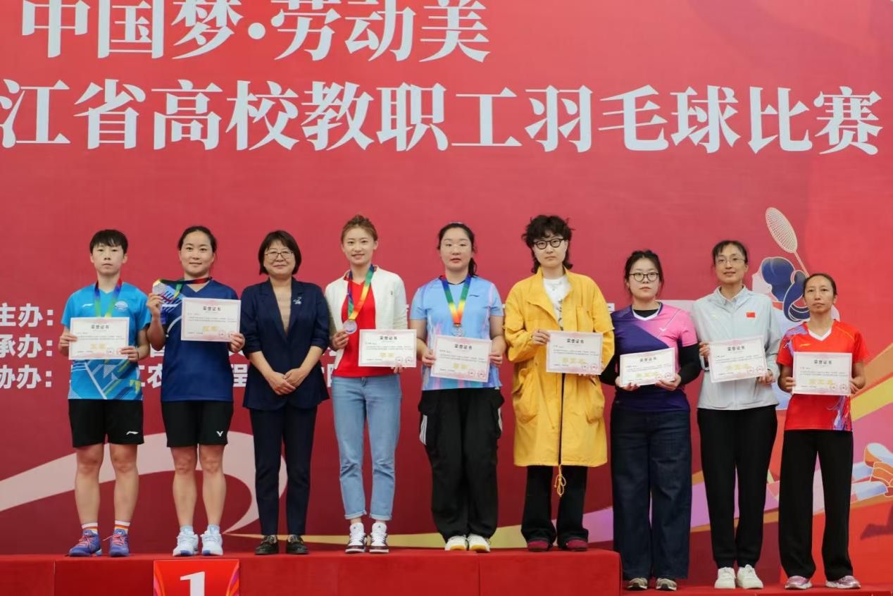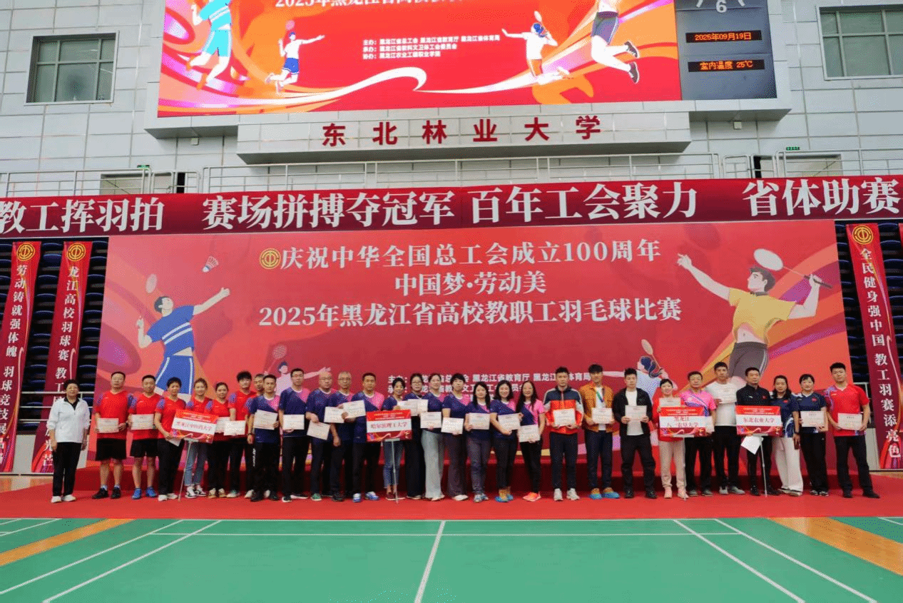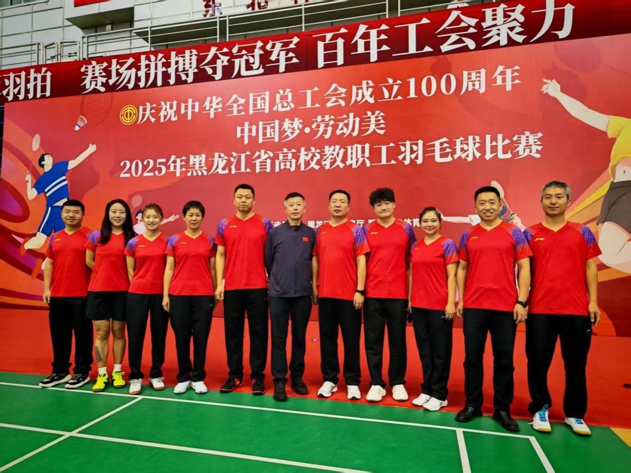 9月19日,“中国梦·劳动美——凝心铸魂跟党走 团结奋斗新征程”2025年黑龙江省高校教职工羽毛球比赛在东北林业大学落幕。我校教职工代表队凭借扎实的竞技水平与顽强的拼搏精神,获多项荣誉。其中,学校代表队在团体比赛荣获第五名;孙冬颖荣获职工组女子单打比赛季军;包占全、宋树森荣获工会干部组季军;孙冬颖、刘岩分别获得“优秀运动员”称号;刘晓东获得“优秀教练员”称号;学校荣获优秀组织奖,这也是我校代表队参加全省羽毛球项目的历史最好成绩。