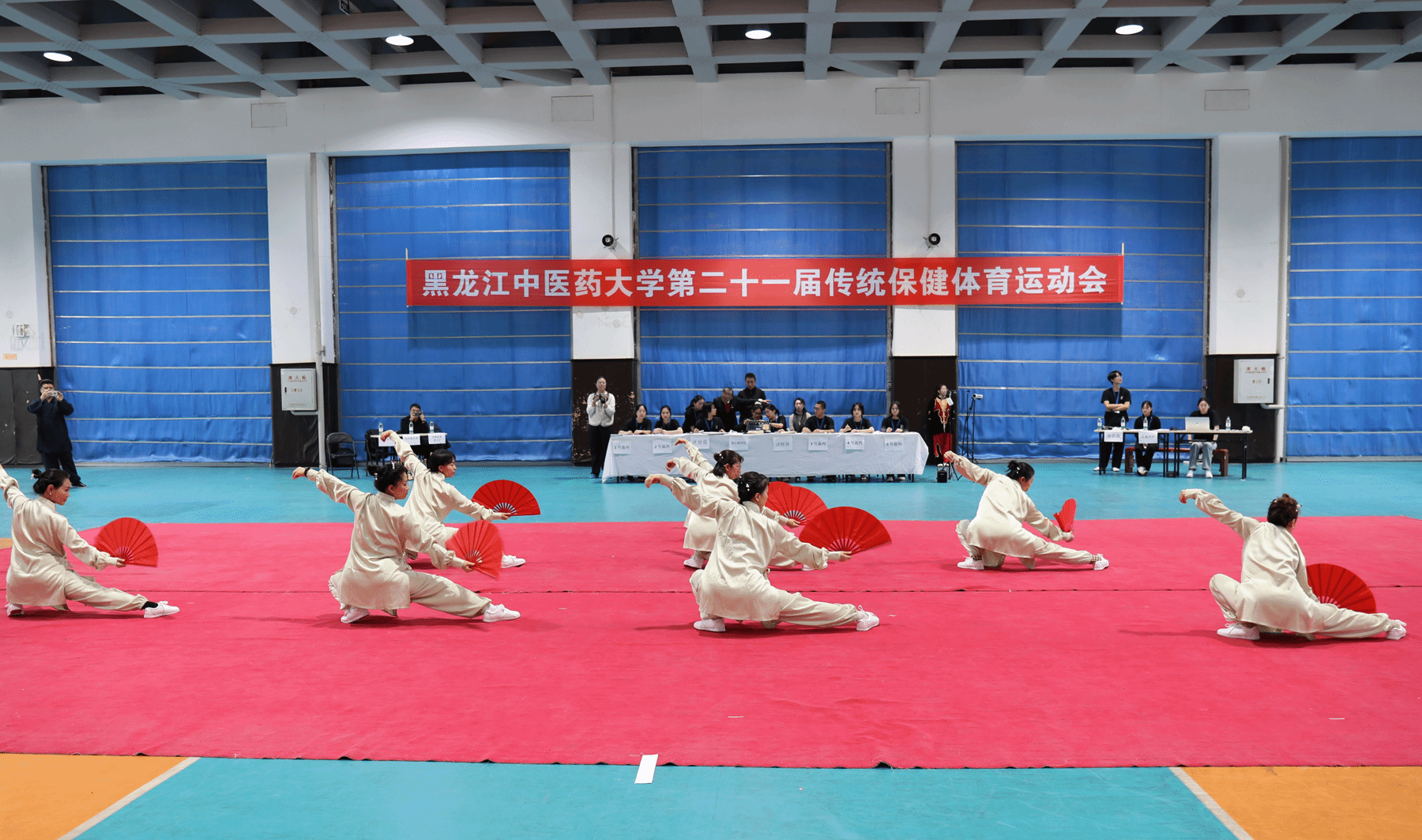 12月3日、6日,由校工会、校团委和体育教研部联合主办,校武术协会承办的学校第二十一届传统保健体育运动会在体育馆三楼举行,全校200余名师生参加了八段锦、易筋经、太极剑、棍术等个人和集体项目。校工会常务副主席王晓鹏,副主席刘晓东,第三临床医学院党委副书记、副院长、工会主席宋树森观摩比赛。