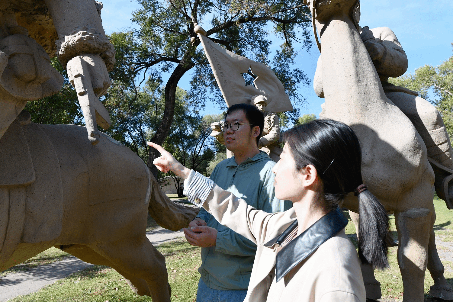 坐落于太阳岛风景区的东北抗联纪念园,是中国东北地区规模最大的抗日主题纪念教育基地。步入园内,以抗联战士组雕为核心的景观群瞬间将大家带回烽火连天的岁月——骑兵马队雕塑展现着抗联将士驰骋疆场的飒爽英姿,浮雕墙镌刻着一幕幕浴血奋战的壮烈场景,复原的抗联营地仿佛还留存着战士们取暖的篝火余温。起伏的地形模拟着当年的游击战场,参天古树见证着岁月变迁,蜿蜒流水诉说着英烈们抗击日寇的感人事迹。棵棵拥有80年树龄的“抗联树”,更是像沉默的老者,静静守护着那段厚重的历史。杨靖宇、赵尚志等抗联民族英雄浮雕群,将先烈的壮举定格,让自然景观与历史叙事深度交融,成为浸润人心的红色课堂。