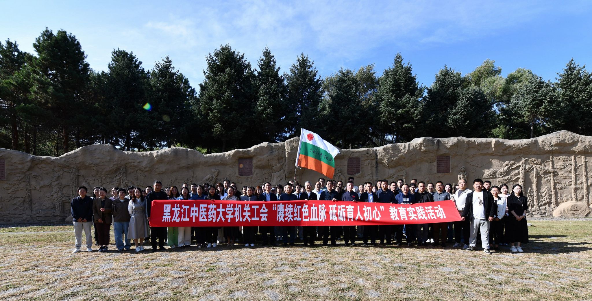 在纪念中国人民抗日战争暨世界反法西斯战争胜利80周年、庆祝第41个教师节之际,9月19日下午,学校机关工会组织机关全体教职工赴东北抗联纪念园,开展“赓续红色血脉 砥砺育人初心”教育实践活动。学校党委书记赵炜明,党委副书记尹占军,党委常委、宣传部部长李和伟参加活动。